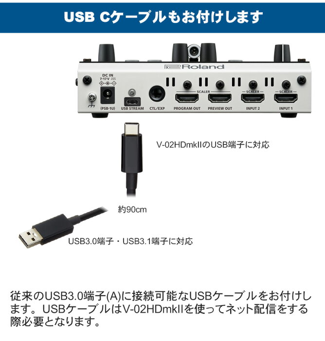 【スイッチャーの特長】 USB C端子を搭載し、USBビデオキャプチャボードのようにWebカメラ出力が可能となったV-02HDmkII。