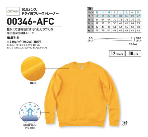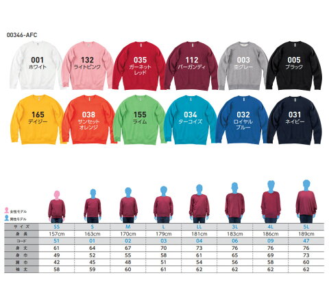 素材 10.0オンス 340g/m2 ポリエステル85%、綿15% リブ:ポリエステル97%、ポリウレタン3% 裏起毛 実寸サイズ 身丈 身巾 肩巾 袖丈 4L 76 69 58 62 5L 76 73 60 62 実寸法の為、多少の誤差がある場合がございます。