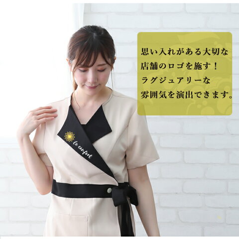 〇吸汗・速乾素材・防汚加工・制電防止・透け防止・半袖・ストレッチ素材 〇大きいポケットスタイル 〇フェイスラインが綺麗にみえる上品なバイカラーCollar 〇ボタンつきリボンスタイル注意事項〇ロゴ刺繍は2枚から承ります。