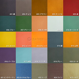 素材 高級牛革ティーポ 色全25色 #01.黒(ブラック) #02.チョコ(焦茶) #03.ブラウン(茶) #04.キャメル #05.赤(レッド) #06.ブルー(少し緑がかった青) #07.グリーン(緑) #08.ヌメ色 #09.白 #10.ターコイズ #11.キイロ(イエロー) #12.ピンク #13.オレンジ #14.紺(ネイビー) #15.山吹 #16.パープル(紫) #17.水色 #18.ラベンダー #19.グレー #20.カーキ #21.ピンクベージュ #22.ロイヤルブルー(青) #23.トープ #24.ワイン #ゴールド(金)※パソコンでの閲覧という特性上、商品の画像が実際の色目と多少異なる場合が有りますがご了承ください。