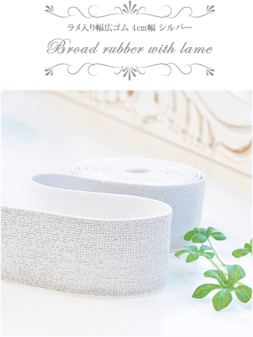 )ラメ入り幅広ゴム 4cm幅シルバーキラキララメが美しいシルバーの幅広ゴムお衣装にはもちろんスカートやパンツなどベルトゴムにピッタリのサイズ♪