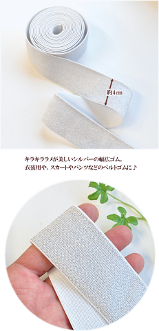 ラメ入り 幅広 ゴム シルバー 4cm幅 《 40mm 平ゴム 平織り カラー お弁当 衣装 サスペンダー ベルト スカート パンツ 入園 入学 ハンドメイド 手芸 手作り 》
