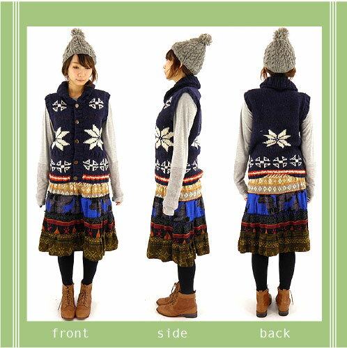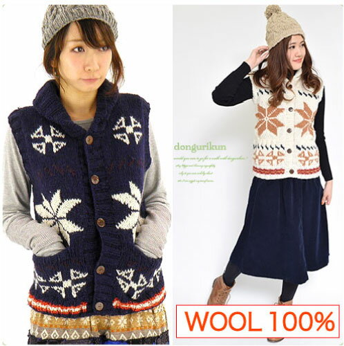 大人気再入荷!ウール100%の手編みがぬくぬくキュート♪カウチン風ニットベスト:雪柄type[wool 100%][ナチュラル系][しっかりニット][ローゲージ][厚手ニットベスト]などをお探しの方に♪◆FASHION\ワンピース・トップス◆★★f99-2