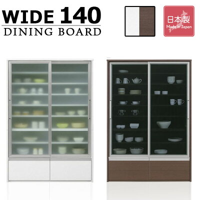食器棚 リビングボード ダイニングボード 幅140 国産 カップボード 引き戸 ガラス扉 スライド扉 ハイタイプ 国産 ホワイト 木目調 可動棚 収納棚 台所 ウォールナット おしゃれ シンプル